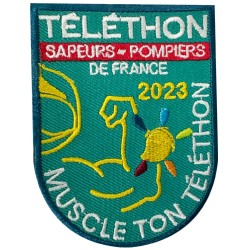 Les écussons sont des outils de reconnaissance à offrir aux organisateurs et bénévoles des animations Sapeurs-Pompiers Téléthon. Ils n'ont pas vocation à être vendus ou utilisés comme objets de collecte.