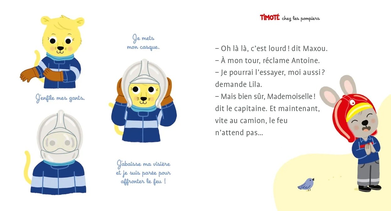 Aujourd'hui, avec sa classe, il visite la caserne des pompiers. Les enfants découvrent le camion et sa grande échelle, rencontrent le capitaine qui déclenche le gyrophare et la sirène et ils essaient les lourds casques des soldats du feu !