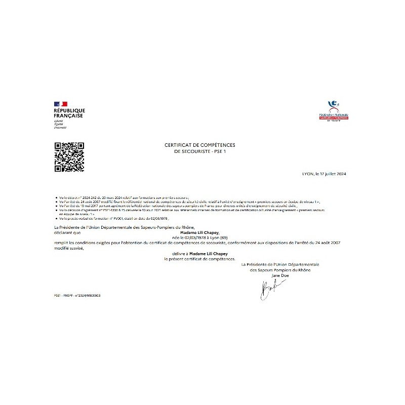 Lot de 100 certificats de compétence PSE1 numériques (droits d'impression diplômes).