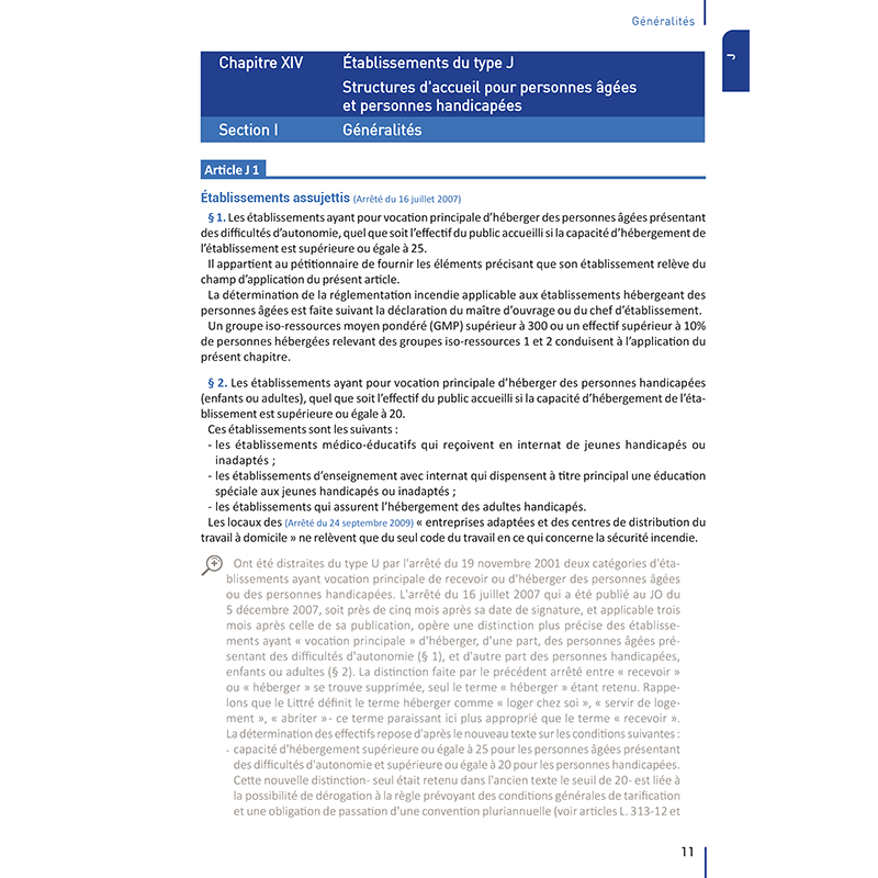 Dispositions particulières commentées - Types J à Y - 1re à 4e catégories.